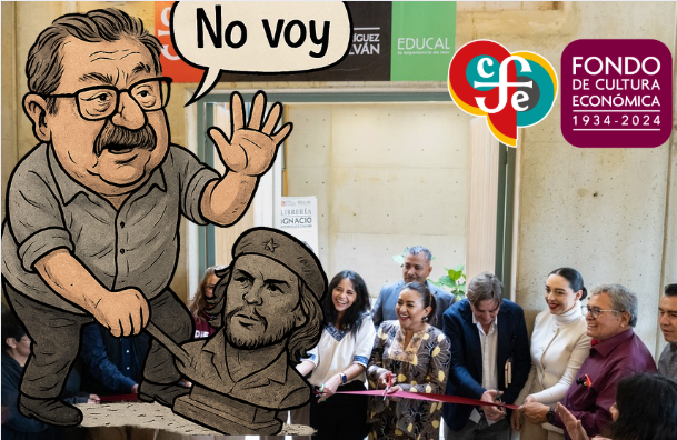 Porque, aunque el cartel anunciaba la presencia del director del FCE, Paco Ignacio Taibo II, este se excusó por estar preparando una marcha en protesta por la retirada de las estatuas de Fidel Castro y Ernesto “El Che” Guevara en la CDMX. Sí, así como lo leen.